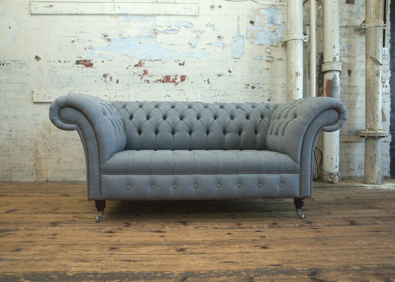 Chesterfield Original Sofa JVMoebel Textil Sofas Stoff Grau 185cm Couch Couchen