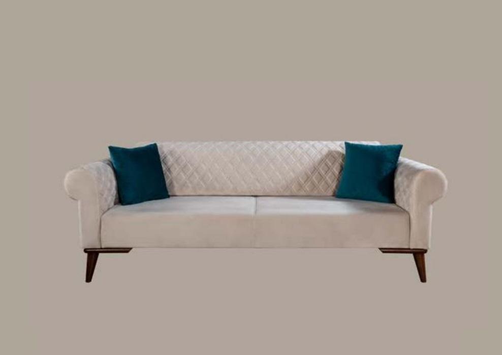 Beige Dreisitzer Couch Elegante Sofa Sitzmöbel Wohnzimmer Samt