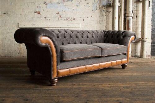 XXL Sofa 3 Sitzer Couch Chesterfield Polster Sitz Garnitur Leder Textil Neu Grau