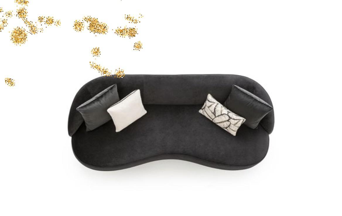 Luxus Couchen Möbel Wohnzimmer Viersitzer Schwarz Textil Möbel Rund 4er