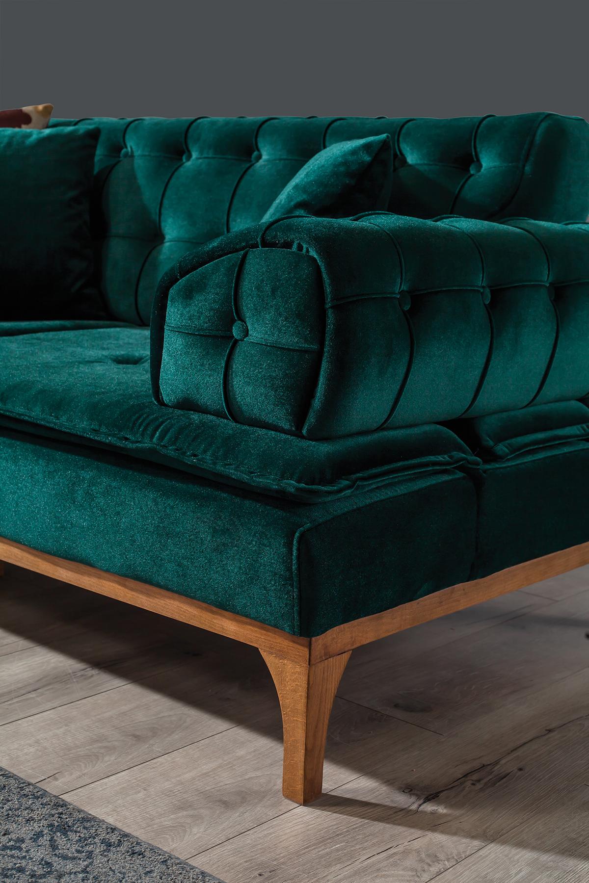 Entspannen Sie in Stil und Komfort mit unserem Luxus Sofa 3 Sitzer! Das stilvolle Design und die hochwertigen Materialien machen dieses Sofa zu einem echten Blickfang in Ihrem Wohnzimmer. Hergestellt aus Holz mit elegantem Textilbezug in einem zeitlosen Grün, bietet dieses Sofa nicht nur eine gemütliche Sitzgelegenheit, sondern auch einen Hauch von Luxus. Mit Maßen von ca. 220 x 92 x 82 cm passt es perfekt in Ihr Zuhause. Bestellen Sie jetzt und verleihen Sie Ihrem Raum einen Hauch von Eleganz!