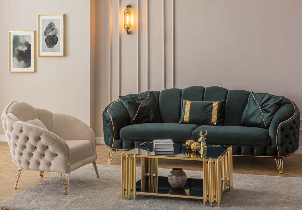 Erleben Sie den Luxus und Komfort mit unserem modernen Chesterfield Grün Sofa! Dieses stilvolle 3-Sitzer Sofa ist perfekt für Ihr Wohnzimmer und wird mit hochwertigen Materialien wie Holz, Textil und Metall gefertigt. Die Maße von ca. 247 x 105 x 90 cm bieten ausreichend Platz zum Entspannen und Genießen. Die elegante grüne Farbe verleiht Ihrem Raum eine frische Note. Bestellen Sie jetzt und verwandeln Sie Ihr Zuhause in eine stilvolle Oase der Gemütlichkeit!