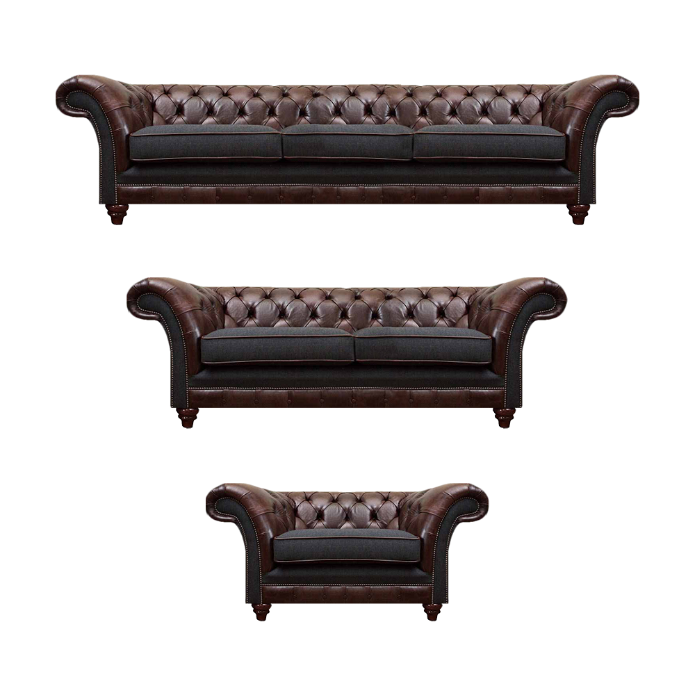 Chesterfield Braun-Graue Garnitur Ledersofas Designer Komplettes 3tlg Set