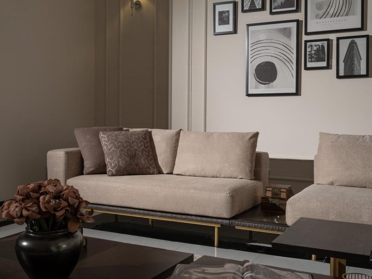 Viersitzer Sofa 4 Sitzer Polstersofa Stoffsofa Beige Moderne Tisch Neu