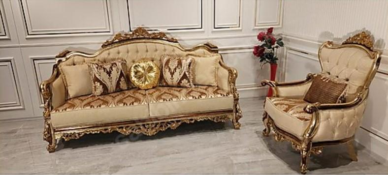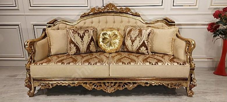 Chesterfield Couch Barock Dreisitzer Möbel Sofa Couchen Stoff Gold