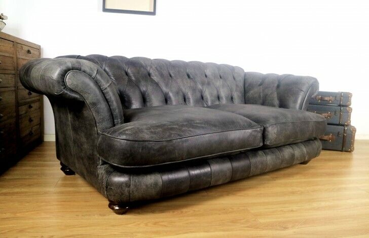 Chesterfield Big Xxl Couch % Leder Schwarzer 3-Sitzer Vintage-Stil