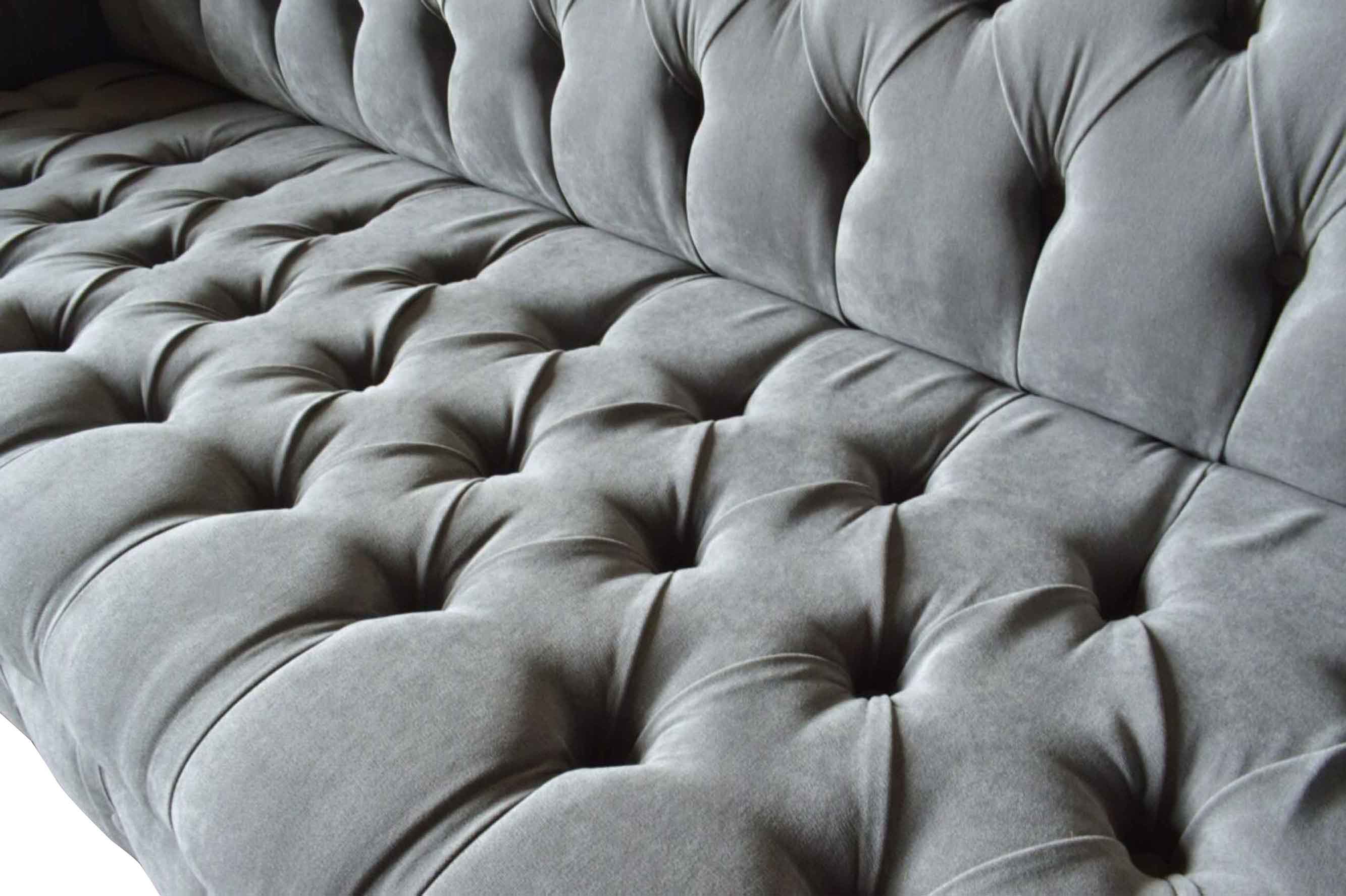 Erleben Sie Luxus und Eleganz mit dem Chesterfield Design Sofa 4 Sitzer! Dieses polsterreiche Meisterwerk aus hochwertigem Textil und Holz ist nicht nur ein Blickfang, sondern auch äußerst komfortabel. Die Maße von ca. 245 x 80 x 90 cm bieten ausreichend Platz für entspannte Stunden alleine oder mit Ihren Liebsten. Mit XL Moebels breiter Farbauswahl können Sie das Sofa ganz nach Ihren Wünschen gestalten. Wählen Sie zwischen verschiedenen Materialgruppen wie Premium Kunstleder, Echtleder, Samtstoff oder dem innovativen Magic Home Fleckenabweisenden Stoff. Optionale Extras wie Kristallsteine anstelle von Knöpfen oder eine maßgefertigte Größe machen dieses Sofa zu einem einzigartigen Möbelstück, das perfekt zu Ihrem Wohnzimmer passt. Tauchen Sie ein in den Komfort des Federkerns und des echten Holzgestells, während Sie auf dem Chesterfield Design Sofa entspannen. Gönnen Sie sich diesen Hauch von Luxus und Qualität in Ihrem Zuhause!