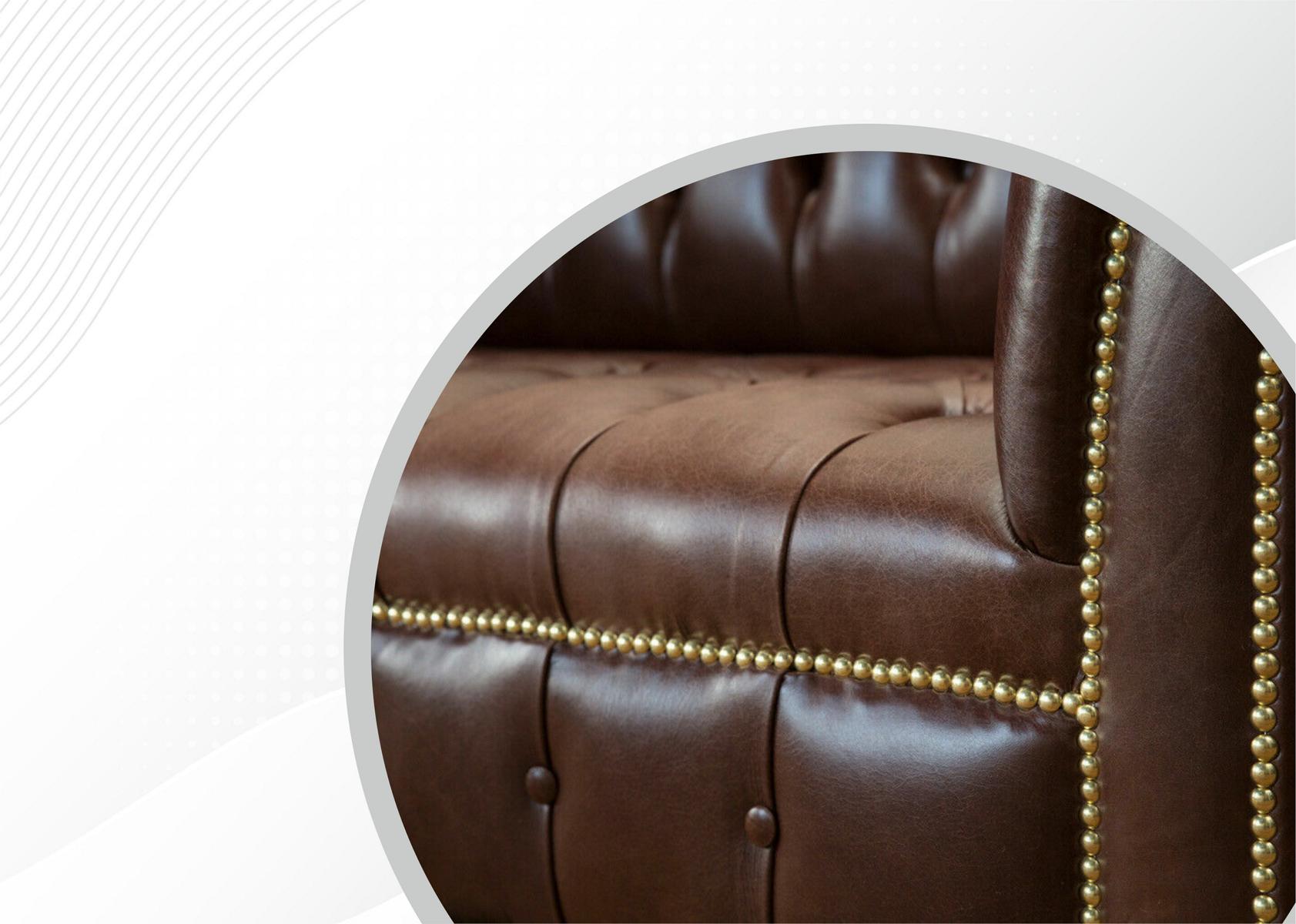 Erwerben Sie das luxuriöse Chesterfield Samt Designer Sofa, ein exklusives 2-Sitzer Modell in Textil-Leder Optik in Braun. Hergestellt aus hochwertigem Premium Kunstleder mit der Option, zwischen verschiedenen Materialien wie Echtleder, Samtstoff oder dem praktischen Magic Home Fleckenabweisenden Stoff zu wählen. Der edle Zweisitzer misst ca. 185 cm in der Länge, 79 cm in der Höhe und 98 cm in der Tiefe, was für ein gemütliches Sitzen sorgt. Das Innengestell aus echtem Holz und der Unterfeder aus Federkern garantieren eine robuste Bauweise und hohen Komfort. Wählen Sie Ihre Lieblingsfarbe aus einer breiten Palette von Grau- und Pastelltönen. Entscheiden Sie sich für Kristallsteine oder Knöpfe als stilvolle Akzente. Holen Sie sich jetzt ein exklusives Designer Sofa für ein luxuriöses Wohnambiente!