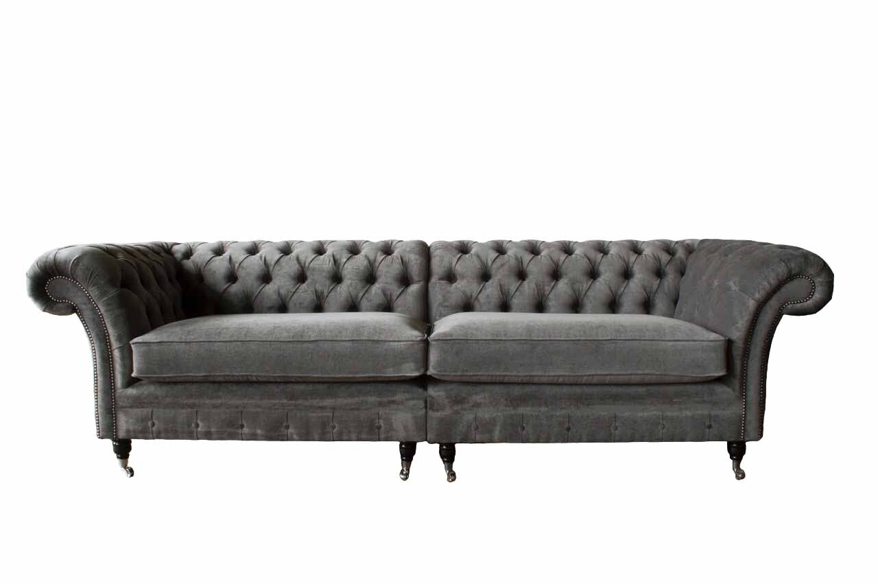 Chesterfield Viersitzer Sofa 4 Sitzer Sofas Stoff Polyester Grau Möbel