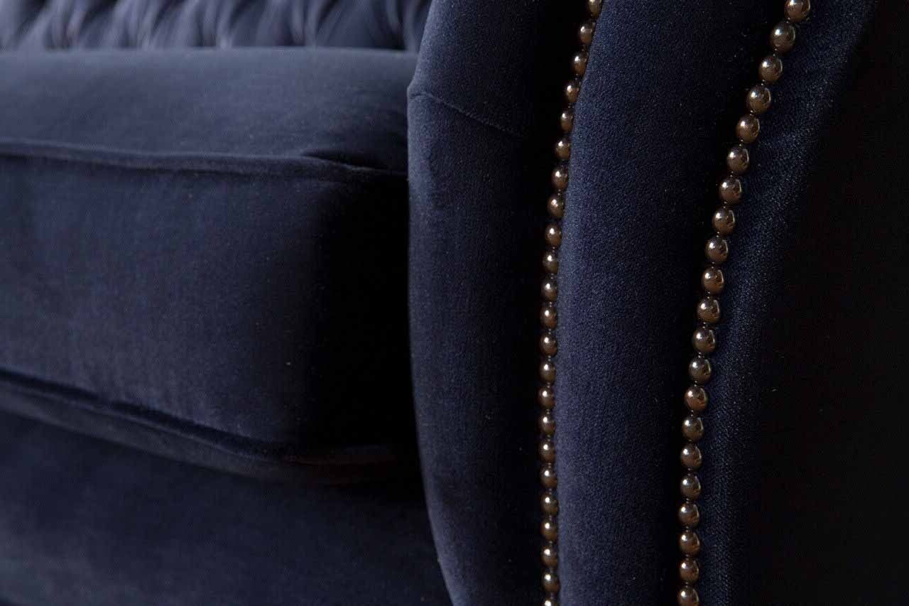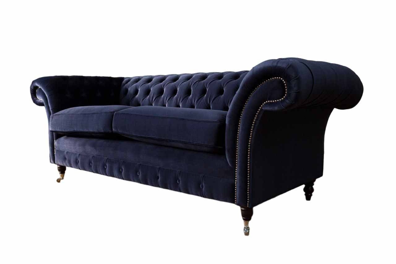 Klassich Chesterfield Wohnzimmer Samt Couch Blau 3 Sitzer Textil Sofas