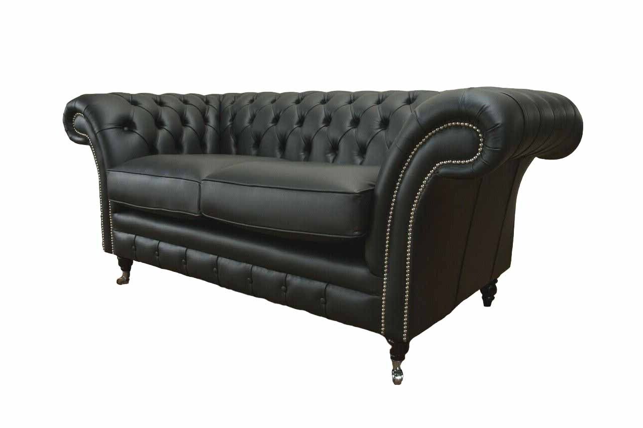 Sofa Luxus Textil Chesterfield Couch Sofas Polster 2 Sitzer Schwarz Leder