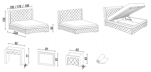 Wählbar in den Liegeflächen 120x200cm, 140x200cm, 160x200cm, 180x200cm