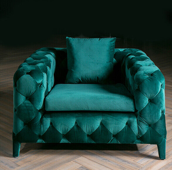 Grüne Chesterfield 3+1 Sitzgarnitur Sofa Stoff Couchen Polster Garnitur