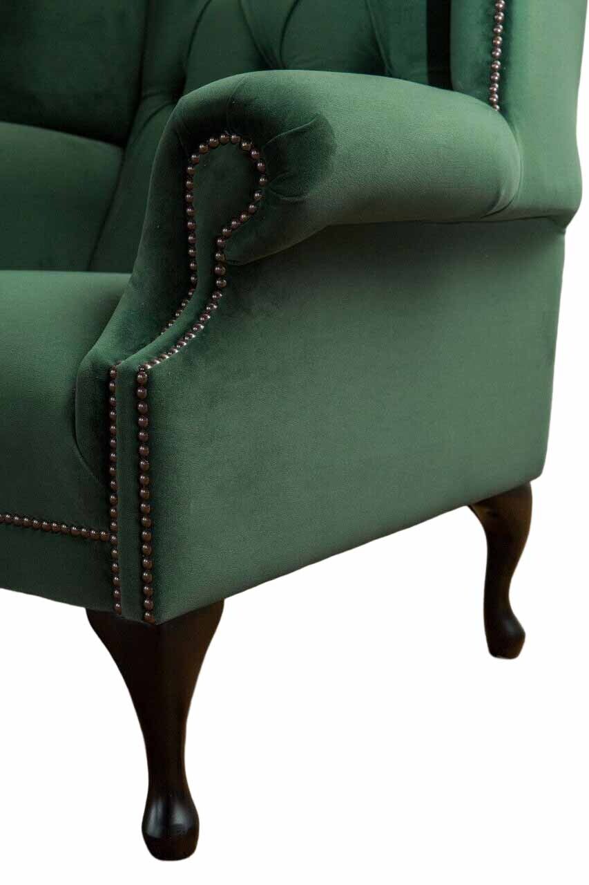 Grüner Ohrensessel Sessel Design Polster Sofa Chesterfield Textil Wohnzimmer