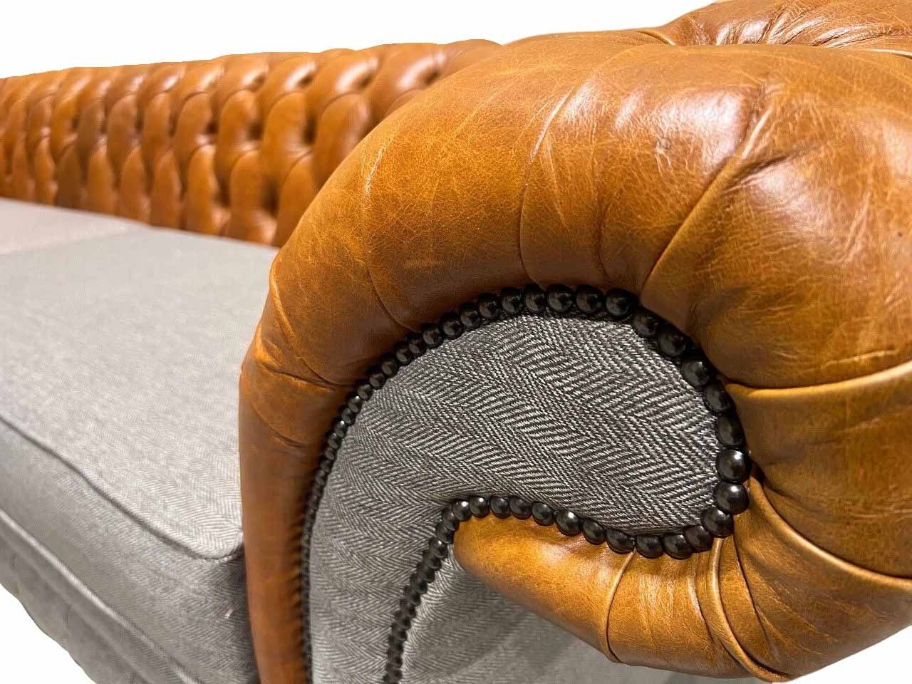 Klassische 4-Sitzer Chesterfield Couch in Braun - Hochwertiges Textil und Edles Lederdesign