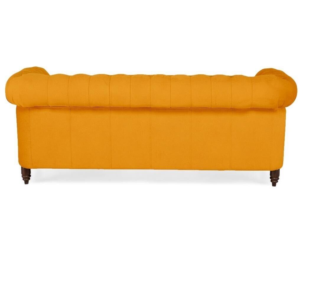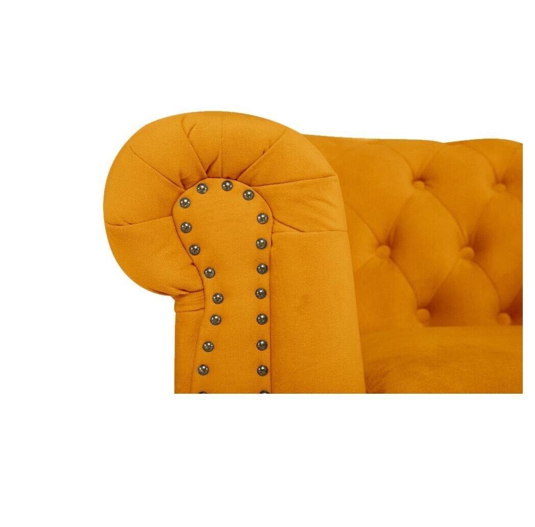 Klassische Chesterfield Möbel Dreisitzer Couch Textil Sofa Edles Design Orange