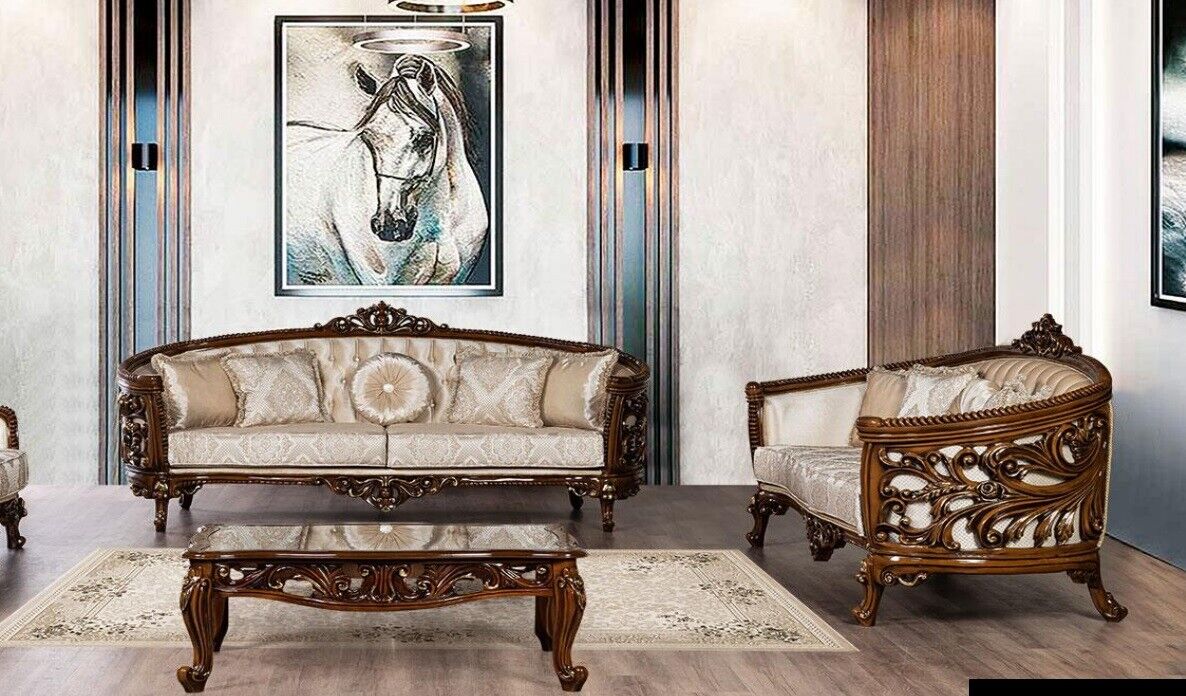 Entdecken Sie die elegante Sofagarnitur 3+3 Sitzer Gruppe mit Sofa und Sessel aus Stoff in einem klassischen Barock-Design! Mit Maßen von ca. 238 cm Länge, 88 cm Breite und 110 cm Höhe bietet dieses Set nicht nur Komfort, sondern auch Stil für Ihr Zuhause. Das Sofa und der Sessel sind in der Farbe wie abgebildet erhältlich und das Innengestell besteht aus echtem Holz. Gestalten Sie Ihre Garnitur nach Ihren Wünschen, indem Sie zwischen verschiedenen Farben wie Braun, Schwarz, Blau und weiteren wählen. Zudem können Sie die Materialwahl beeinflussen - von Samt über Velours bis hin zu Kunstleder oder Leder ist alles möglich. Holen Sie sich noch heute Ihr individuelles und hochwertiges Sofaset!