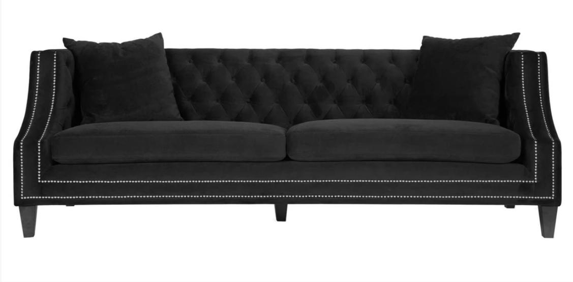 Luxus Schwarze Stoffcouch Dreisitzer Polster Möbel Hotel Wohnzimmer Praxis Samt