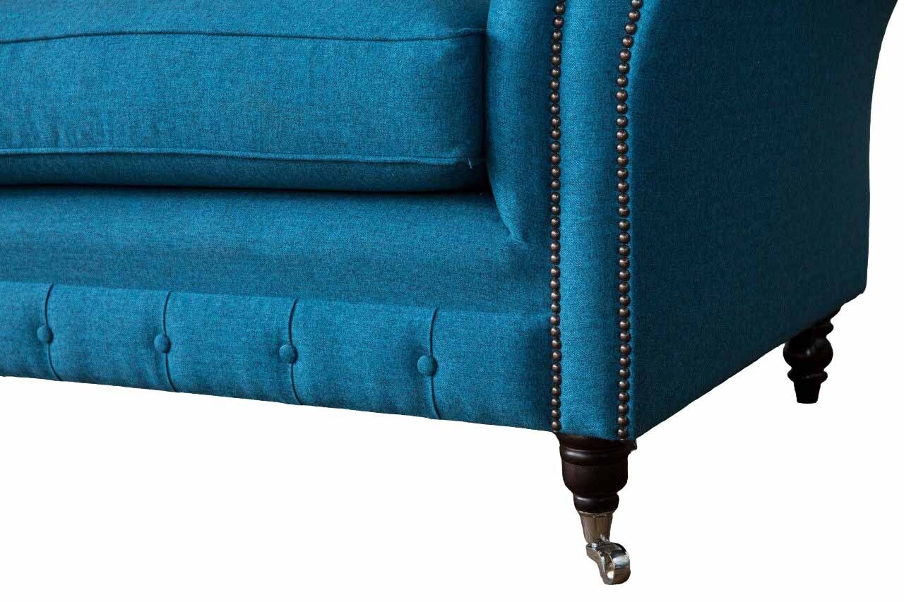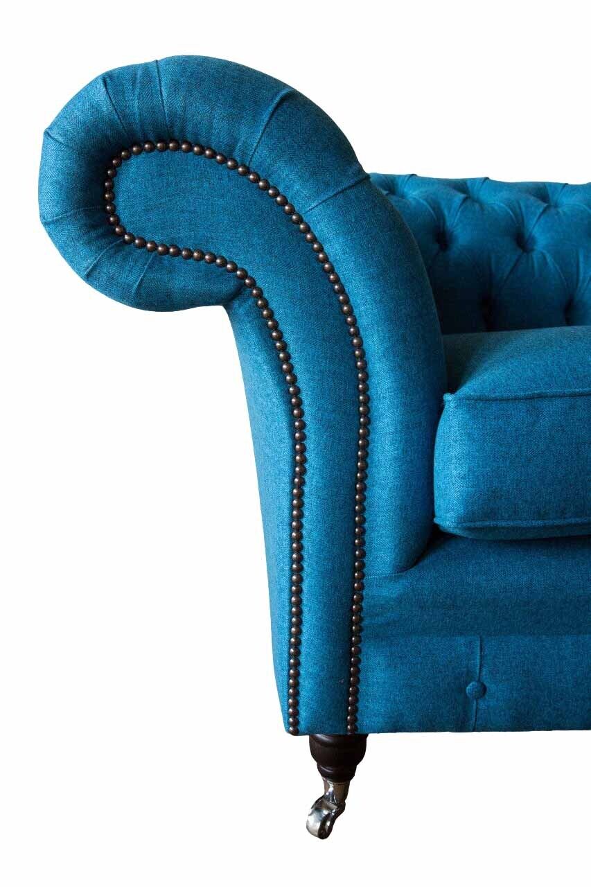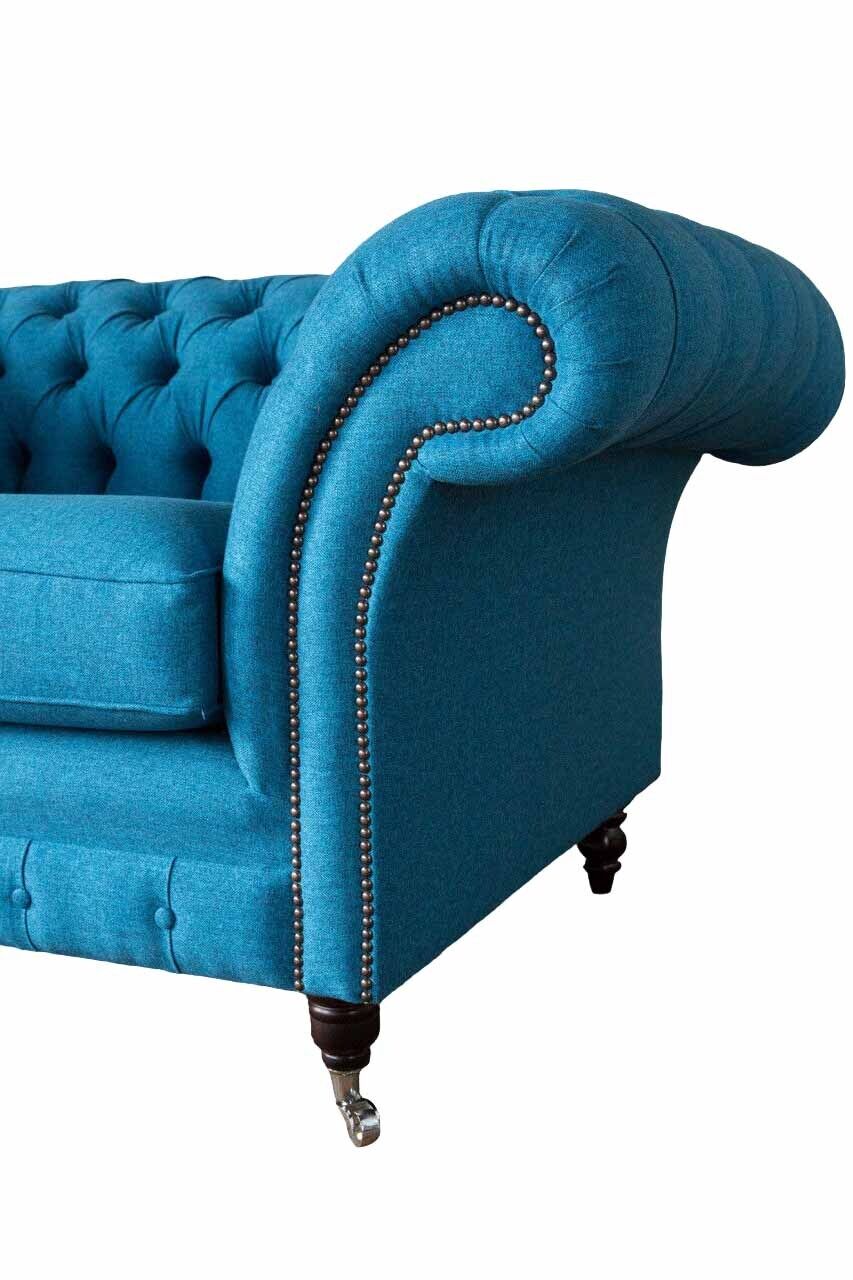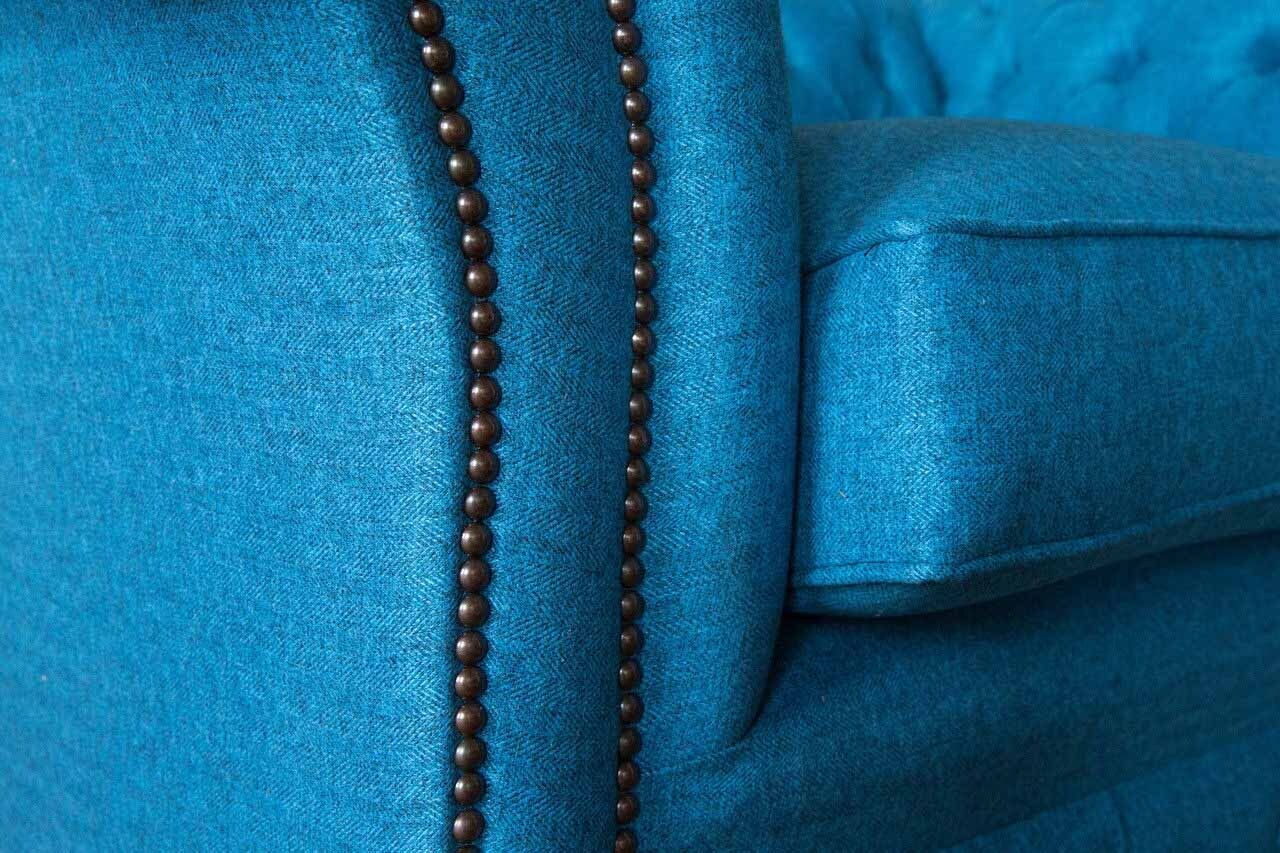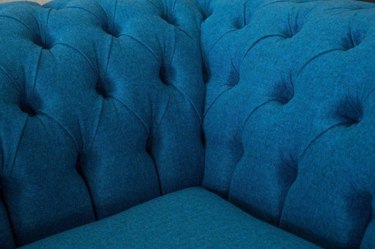 Blauer Chesterfield Sessel Polster Sofa Couchen 1,5 Sitzer Einsitzer Textil