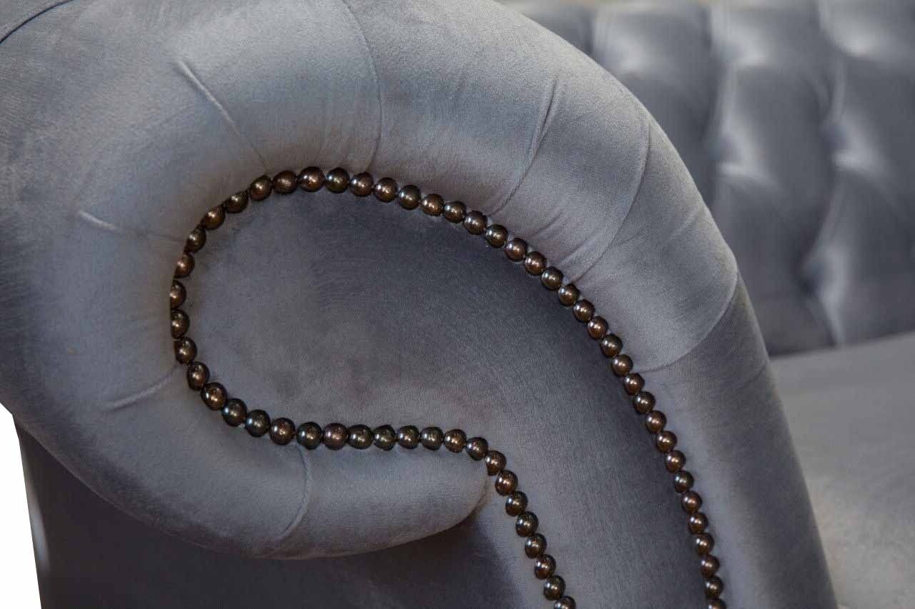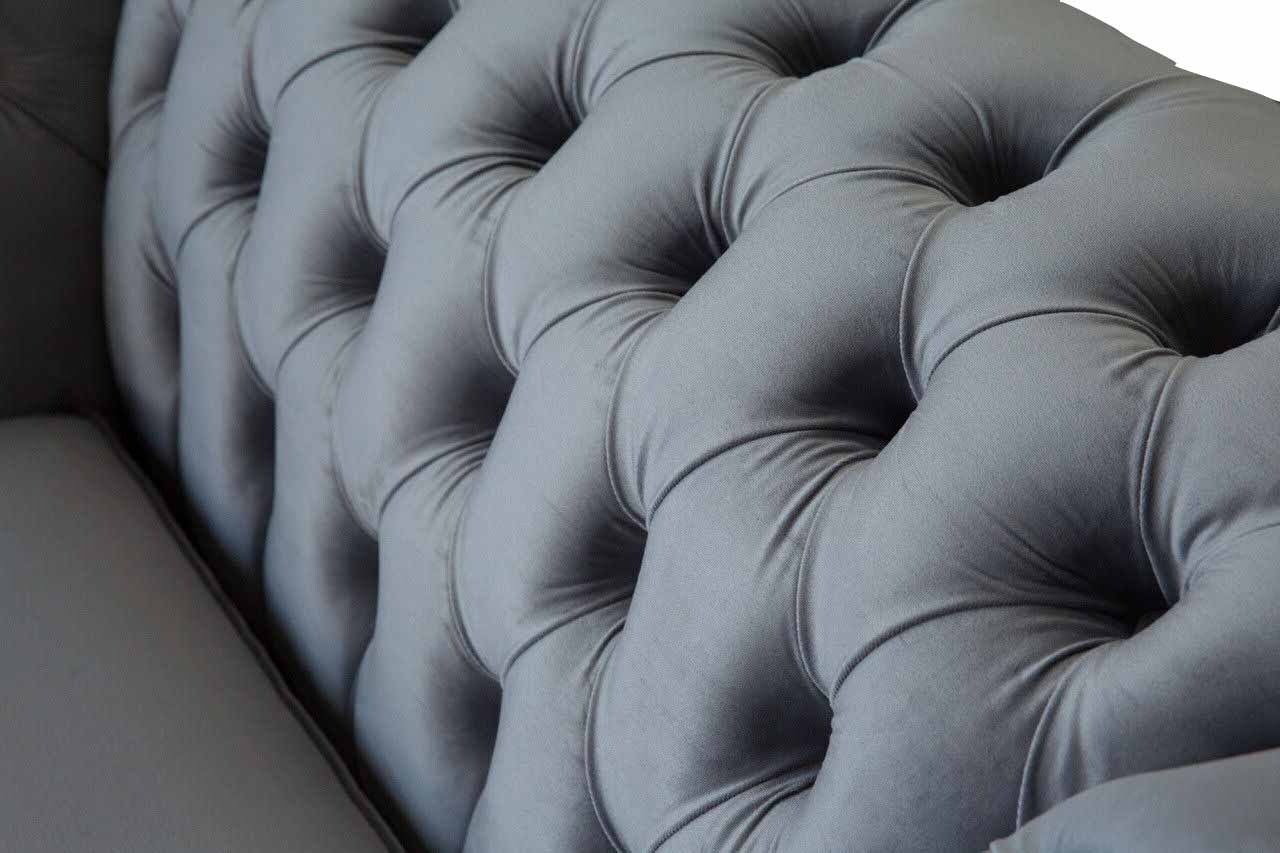 Entspannen Sie sich in Stil mit unserem Chesterfield Ohrensessel Hocker Sessel Couch Polster Set in Grau Textil! Dieses Set besticht durch zeitlose Eleganz und hohen Komfort. Die Maße des Sessels betragen ca. 90 x 80 x 130 cm, mit einer Sitzhöhe von ca. 40 cm und einer Sitztiefe von ca. 50 cm. Der passende Hocker misst ca. 120 x 40 x 60 cm. Sie haben die freie Wahl der Farbe und des Materials! Entscheiden Sie sich zwischen verschiedenen Stoffen oder gegen einen Aufpreis für 100% Vollleder. Zusätzlich können Sie eine Bettfunktion mit Matratze hinzufügen. Unser Premium-Sortiment bietet eine Vielzahl an Materialien, darunter Premium Echtleder, Premium Samt Stoff und Magic Home (Fleckenabweisender Stoff). Individuelle Größen wie 5-Sitzer, 4-Sitzer, 3-Sitzer, 2-Sitzer oder 1-Sitzer sind ebenso möglich. Optional sind auch Sondergrößen oder Maßanfertigungen auf Anfrage erhältlich. Genießen Sie Luxusdetails wie Kristallsteine anstelle von Knöpfen, oder sogar echte Swarovski Kristallsteine. Das Innengestell aus echtem Holz und Federkern sorgt für Stabilität und Komfort. Entdecken Sie noch heute die vielfältigen Möglichkeiten und gestalten Sie Ihren neuen Lieblingsplatz ganz nach Ihren Wünschen!