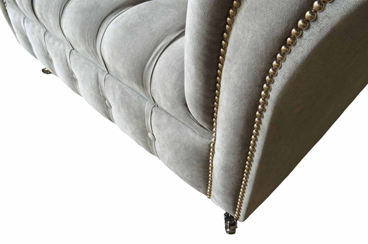 Entspannen Sie stilvoll mit unserem Grauen Chesterfield Ohrensessel im klassischen Design für Ihr Wohnzimmer. Hergestellt aus hochwertigem Textil und Holz, bietet dieser Sessel Komfort und Eleganz in einem. Die Maße von ca. 130 x 80 x 90 cm und eine Sitzhöhe von ca. 42 cm sorgen für eine gemütliche Sitzposition. Das Beste daran? Sie können die Farbe frei wählen und unter verschiedenen Materialoptionen wie Premium Kunstleder, Echtleder, Samtstoff oder Fleckenabweisendem Stoff auswählen. Optional bieten wir auch verschiedene Größen an, darunter 5-Sitzer, 4-Sitzer, 3-Sitzer, 2-Sitzer und 1-Sitzer. Für eine individuelle Note können Sie sogar eine Sondergröße oder Maßanfertigung anfragen. Mit echtem Holzgestell, Federkern und der Option zwischen klassischen Knöpfen, Kristallsteinen oder echten Swarovski Kristallsteinen als Verzierung, wird dieser Ohrensessel zu einem wahren Blickfang in Ihrem Zuhause. Schaffen Sie eine Wohlfühloase mit unserem Grauen Chesterfield Ohrensessel und genießen Sie entspannte Stunden in stilvollem Ambiente.