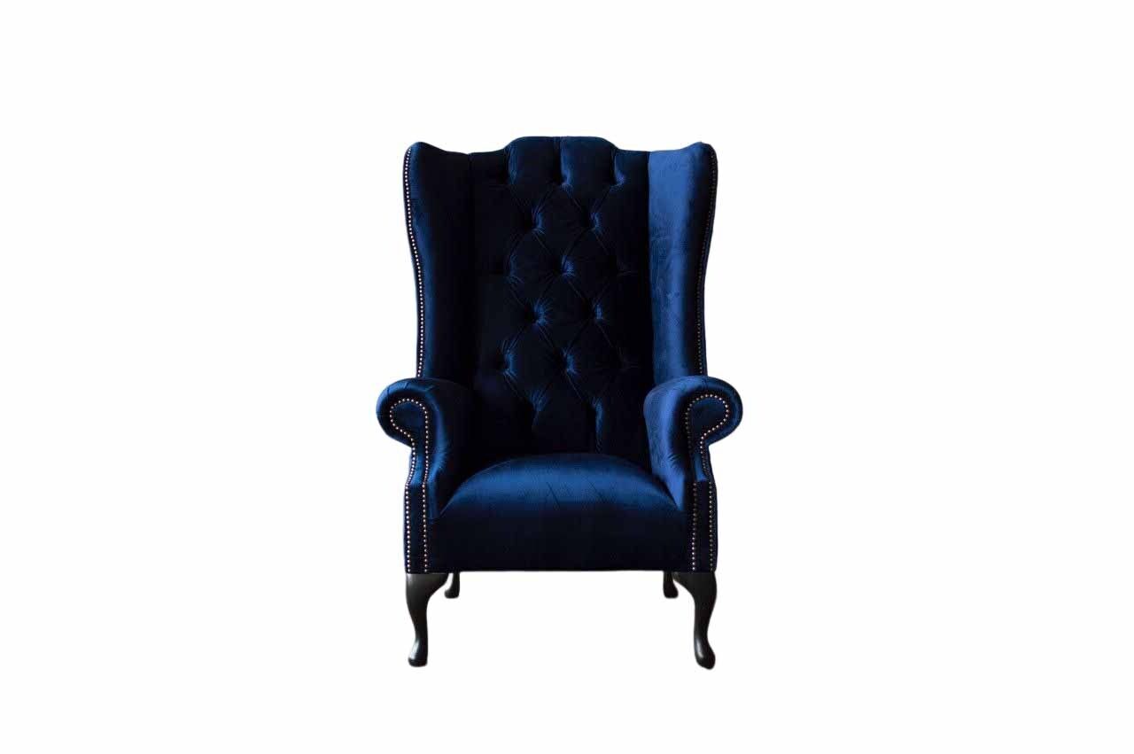 Ohrensessel Chesterfield Sofa Couch Polster 1 Sitzer Sessel Textil Blau