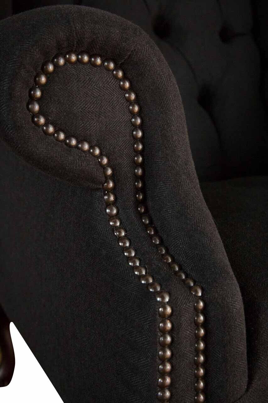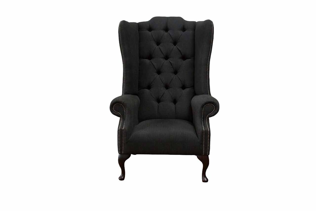Ohrensessel Sessel Sitzer Schwarz Design Polster Chesterfield Textil Neu