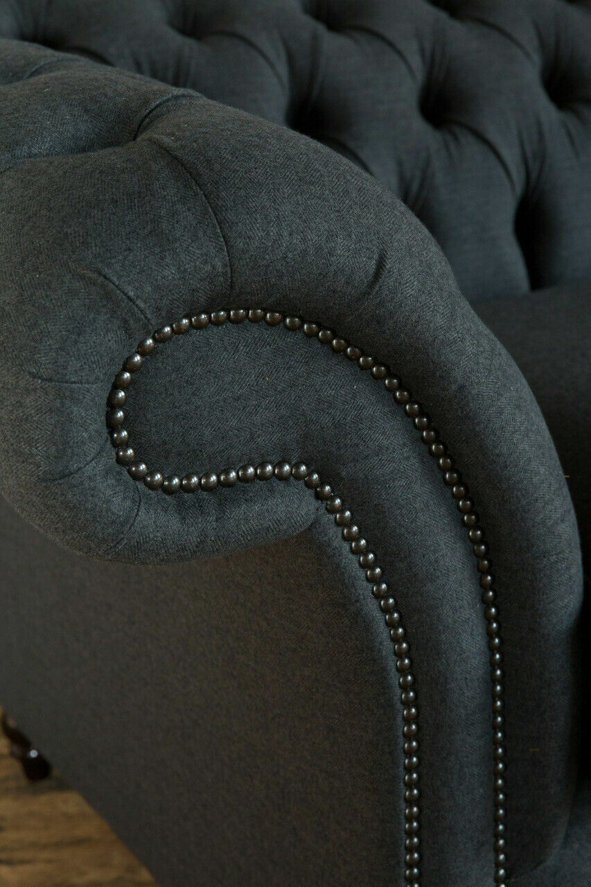 Original Chesterfield Textil Leder Sofa Couch Polster Big Sitzpolster Grau 265cm