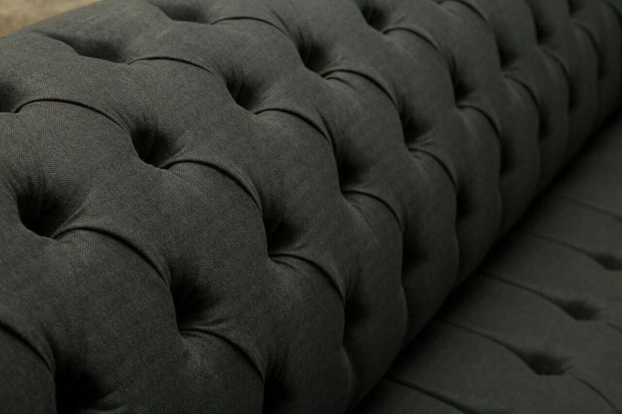 Schwarze Chesterfield Textil Leder Sofa Couch Polster Big Sitzpolster xxl 265cm
