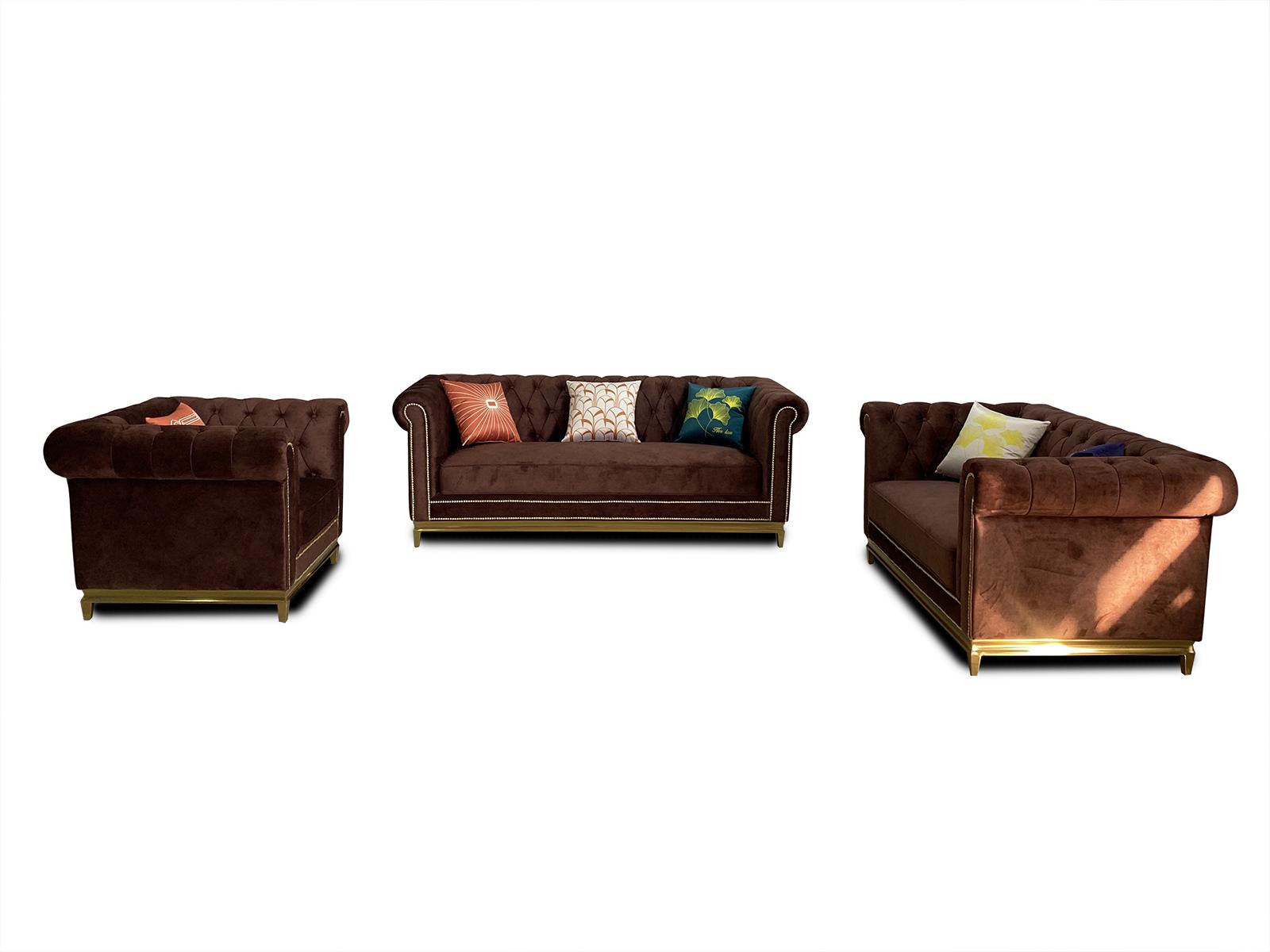 Sofagarnitur Chesterfield mit Metall Luxus Couch Textil Polster Möbel