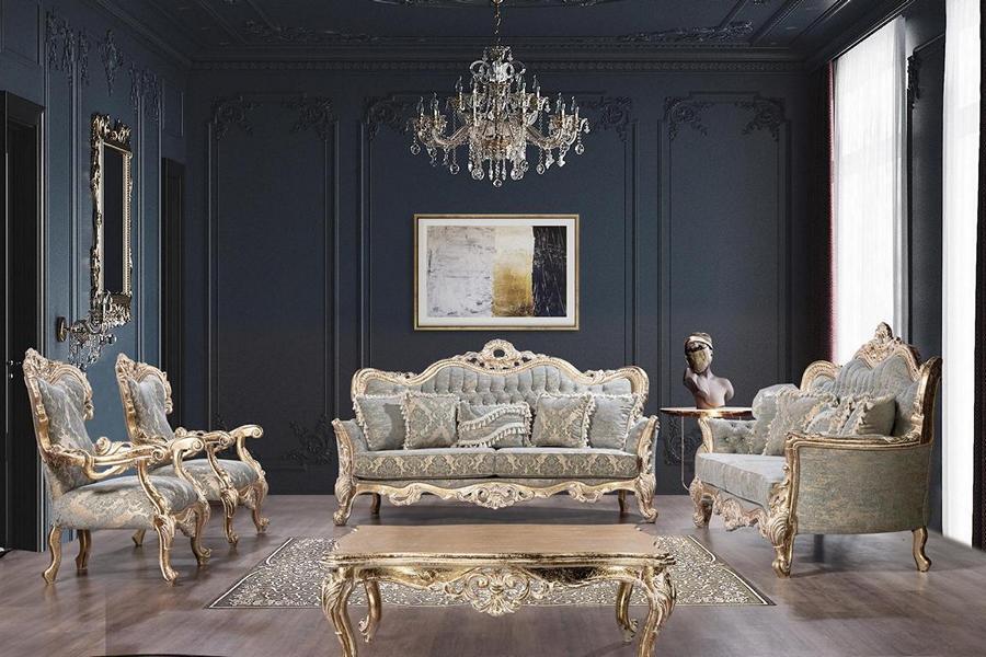 Erwerben Sie jetzt die luxuriöse Sofagarnitur der Marke XL Moebel für Ihr Wohnzimmer! Dieses klassische Set besteht aus einem 3-Sitzer-Sofa und einem Sessel, die mit edlem Holz und hochwertigem Textil gefertigt sind. Die eleganten geschwungenen Formen und filigranen Schnitzereien verleihen Ihrem Zuhause einen Hauch von Luxus. Der 3-Sitzer misst ca. 219 x 89 x 126 cm (Länge x Breite x Höhe) mit einer Sitzhöhe von ca. 46 cm und Sitztiefe von ca. 54 cm. Der Sessel ist ca. 78 x 60 x 121 cm groß (L x B x H) und bietet eine gemütliche Sitzhöhe von 46 cm sowie eine Sitztiefe von 54 cm. Die Sofagarnitur ist in der abgebildeten Farbe erhältlich, aber auf Anfrage sind auch andere Farben möglich. Bringen Sie Stil und Eleganz in Ihr Zuhause und entspannen Sie auf diesen einzigartigen Möbelstücken von XL Moebel!
