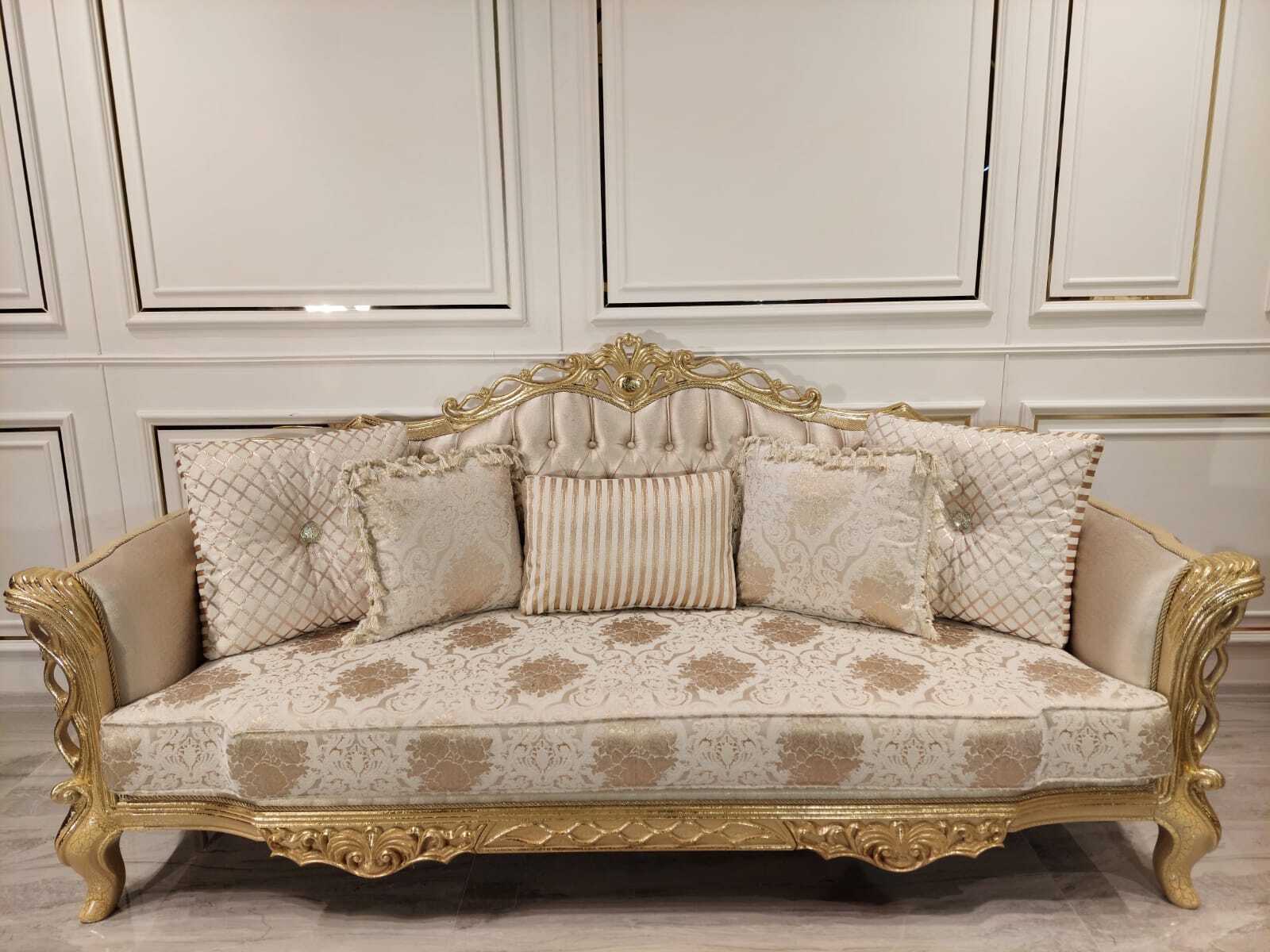 Sofagarnitur Sofa 3+1 Sitzer Sessel Tisch geschnitzten Beinen Couchtisch