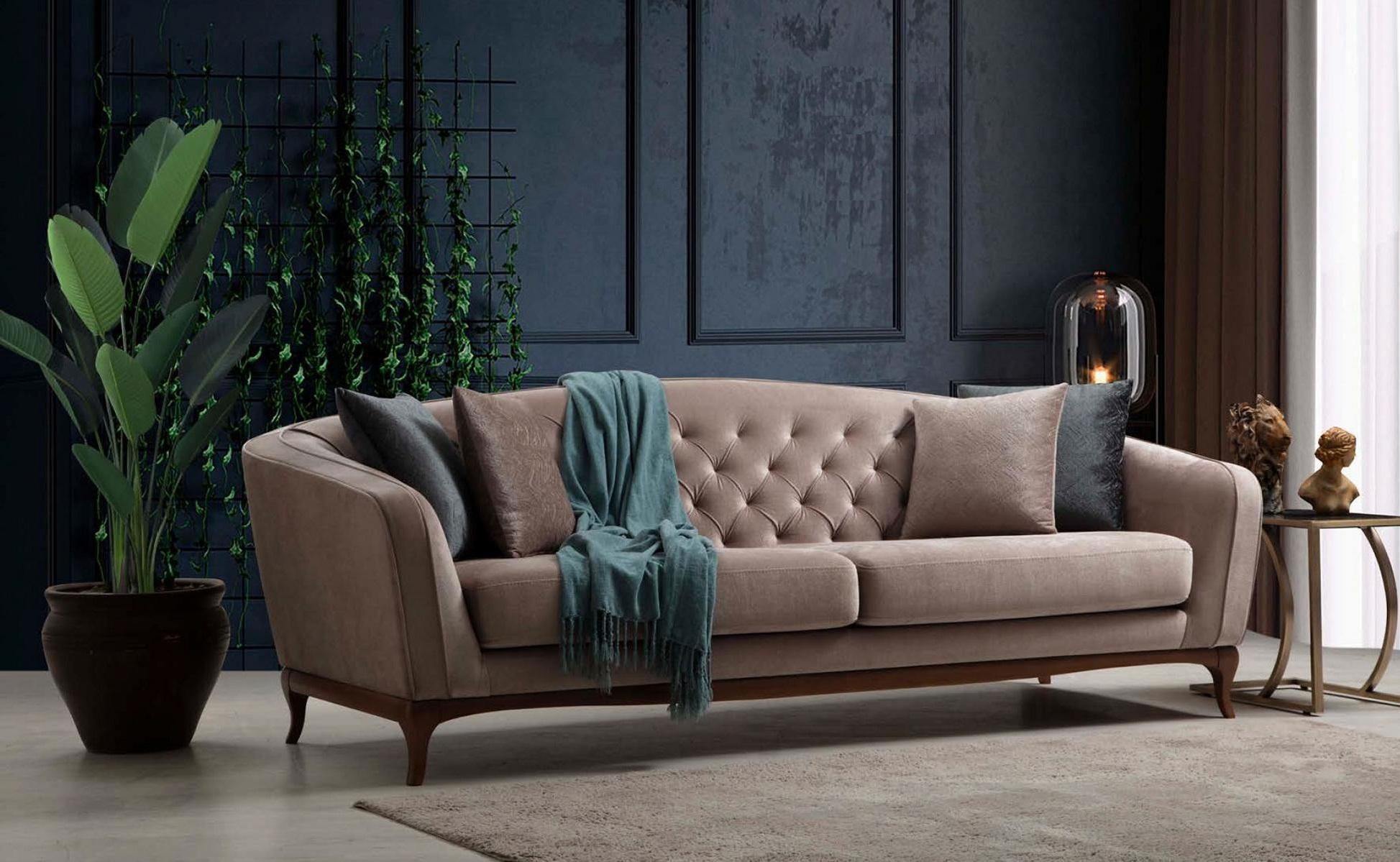 Entdecken Sie Luxus und Modernität mit unserer Sofagarnitur Sofa Luxus Garnitur Sofas Sessel 4+3+1 Sitzer! Diese 3-teilige Set Design Garnitur ist die perfekte Ergänzung für Ihr Wohnzimmer. Dank unserer großen Auswahl an Farben wie Braun, Grün, Schwarz, Blau, Rot und Grau können Sie das Sofa ganz nach Ihren Wünschen gestalten. Zudem bieten wir verschiedene Materialien zur Auswahl an, darunter Samt, Velours, Polyester, Kunstleder oder Leder. Ihre Zufriedenheit steht bei uns an erster Stelle, daher können Sie die Sitztiefe, Länge oder Breite individuell anpassen. Die Maße der Garnitur sind wie folgt: - 4 Sitzer: Länge ca. 267 cm, Breite ca. 94 cm, Höhe ca. 87 cm - 3 Sitzer: Länge ca. 230 cm, Breite ca. 90 cm, Höhe ca. 55 cm - Sessel: Länge ca. 91 cm, Breite ca. 77 cm, Höhe ca. 84 cm Das Innengestell besteht aus echtem Holz und der Bezug ist aus hochwertigem Stoff gefertigt. Erleben Sie Komfort und Stil in Ihrem Zuhause mit unserer exklusiven Sofagarnitur! Bestellen Sie jetzt und machen Sie Ihr Wohnzimmer zu einem Ort des Wohlfühlens.
