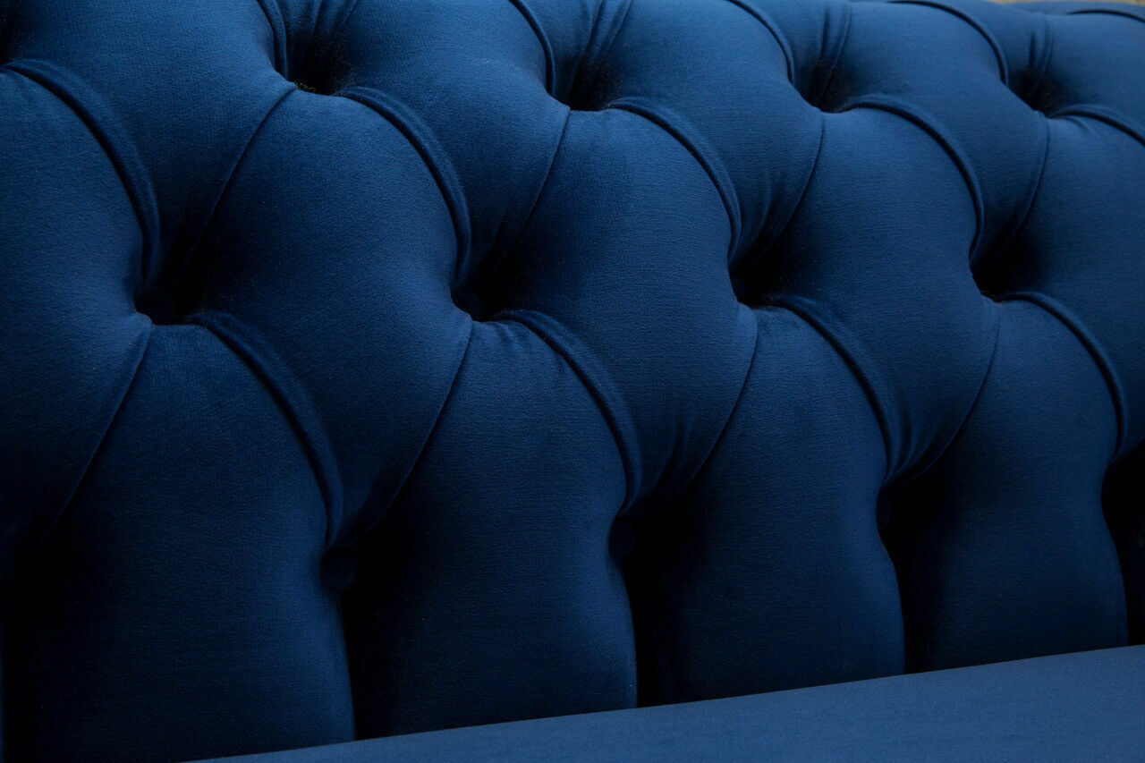 Entdecken Sie den zeitlosen Charme der klassischen Chesterfield Couch mit diesem eleganten 4-Sitzer-Sofa! Hergestellt aus hochwertigem Samt- oder Lederbezug in einem wunderschönen Blauton, fügt sich dieses Design-Polstermöbel perfekt in Ihr Zuhause ein. Mit Maßen von ca. 265 x 79 x 98 cm bietet dieses Sofa nicht nur Komfort, sondern auch genügend Platz für die ganze Familie. Die Sitzhöhe von ca. 42 cm und die Sitztiefe von ca. 64 cm sorgen für entspannte Stunden. Wählen Sie aus einer Vielzahl von Farben, darunter Himmelblau, Marineblau, Smaragdgrün und vieles mehr. Das Material aus hochwertigem Textil sorgt für Langlebigkeit und angenehme Haptik. Optional stehen Ihnen verschiedene Materialien im Shop zur Auswahl, darunter Premium Kunstleder, Premium Echtleder aus Italien oder luxuriöser Samtstoff. Der Korpus aus echtem Holz und die Federkern-Unterfederung geben diesem Sofa Stabilität und Komfort. Lassen Sie sich von der Eleganz und Qualität dieses Chesterfield Sofas begeistern und bringen Sie Stil in Ihr Wohnzimmer! Gönnen Sie sich Luxus mit diesem exquisiten Möbelstück!