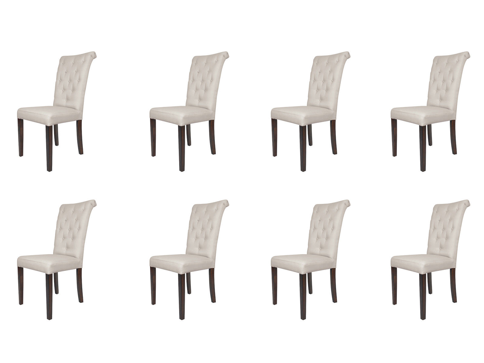 Erweitern Sie Ihr Ess- oder Wohnzimmer mit unserem 8x Stühle Stuhl Set Sessel Lehn Design! Diese hochwertigen Stühle bieten nicht nur Komfort, sondern auch ein stilvolles Design, das Ihrem Raum einen Hauch von Eleganz verleiht. Mit einer Gesamthöhe von ca. 99 cm und einer bequemen Sitzhöhe von ca. 46 cm sind diese Stühle sowohl für das Essen am Tisch als auch für entspannte Stunden im Wohnzimmer perfekt geeignet. Die Gesamtbreite von ca. 46 cm und die Tiefe von ca. 53 cm sorgen für ausreichend Platz und Bequemlichkeit. Wählen Sie aus einer Vielzahl von Farben und Materialien, um die Stühle an Ihren persönlichen Stil anzupassen. Darüber hinaus haben Sie die Möglichkeit, zwischen Knöpfen oder funkelnden Kristallsteinen für eine luxuriöse Note zu wählen (mit Aufpreis). Hergestellt mit einem soliden Innengestell aus echtem Holz, bieten diese Stühle nicht nur Stil, sondern auch Langlebigkeit und Stabilität. Verpassen Sie nicht die Gelegenheit, Ihre Räume mit diesen eleganten Stühlen von XL Moebel aufzuwerten!