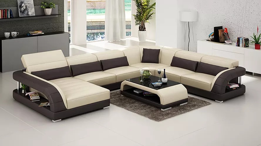 Möbelset, Ecksofa und Tisch, hochwertige Materialien, moderner Stil