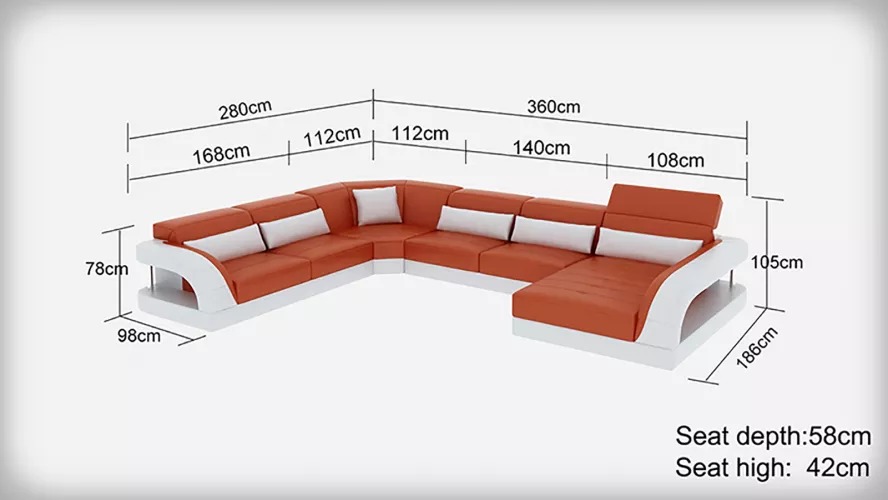 Erwecken Sie Ihr Wohnzimmer zum Leben mit unserem modernen Design Ecksofa! Diese Eckcouch in U-Form besticht durch ihre zeitlose Eleganz und ihr komfortables Design. Hergestellt aus Premium Lederfaserstoff (70% Leder / 30% Polyester) bietet sie nicht nur eine bequeme Sitzmöglichkeit, sondern auch ein stilvolles Ambiente. Mit Maßen von ca. 280 x 360 x 186 cm oder 186 x 360 x 280 cm, einer Höhe von ca. 78/105 cm und einer Sitztiefe von ca. 58 cm, ist dieses Ecksofa die perfekte Ergänzung für Ihr Zuhause. Zudem können Sie zwischen verschiedenen Farben wie Zyan, Schwarz, Weiß und vielen mehr wählen, um Ihren persönlichen Stil widerzuspiegeln. Optional können Sie das Ecksofa auch in verschiedenen Materialien wie Premium Echtleder aus Italien oder Premium Textilstoff erhalten. Das Innengestell aus echtem Holz sorgt für Stabilität und Langlebigkeit. Bringen Sie Stil und Komfort in Ihr Wohnzimmer mit diesem Design Ecksofa von XL Möbel. Bestellen Sie noch heute und machen Sie Ihr Zuhause zu einer Wohlfühloase!