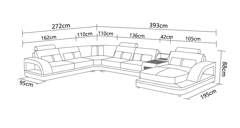 Erwerben Sie jetzt Ihr luxuriöses Ecksofa in U-Form aus premium Lederfaserstoff bei XL Möbel! Mit Maßen von ca. 272 x 393 x 195 cm oder ca. 195 x 393 x 272 cm passt dieses exklusive Möbelstück perfekt in Ihr Wohnzimmer. Die Eckgarnitur verfügt über eine USB-Anschlussmöglichkeit - modern und praktisch zugleich! Die Farbauswahl steht Ihnen frei - ob ein kräftiges Rot, edles Schwarz oder elegantes Weiß, bei uns finden Sie eine Vielzahl von Farboptionen. Das hochwertige Material, bestehend aus 70% Leder und 30% Polyester, sorgt für höchsten Sitzkomfort und eine lange Lebensdauer. Optional können Sie Ihr Sofa weiter individualisieren, z.B. mit einer elektrischen Relax-Fußstütze oder einem Soundsystem über Bluetooth. Auch eine Unterbodenbeleuchtung mit Farbwechsel ist möglich. Gestalten Sie Ihr Ecksofa ganz nach Ihren Wünschen und schaffen Sie sich eine gemütliche Wohnlandschaft, die Ihren Ansprüchen gerecht wird! Entdecken Sie jetzt die vielfältigen Gestaltungsmöglichkeiten und bestellen Sie noch heute Ihr exklusives Ecksofa aus echtem Holzgestell und premium Lederfaserstoff bei XL Möbel!