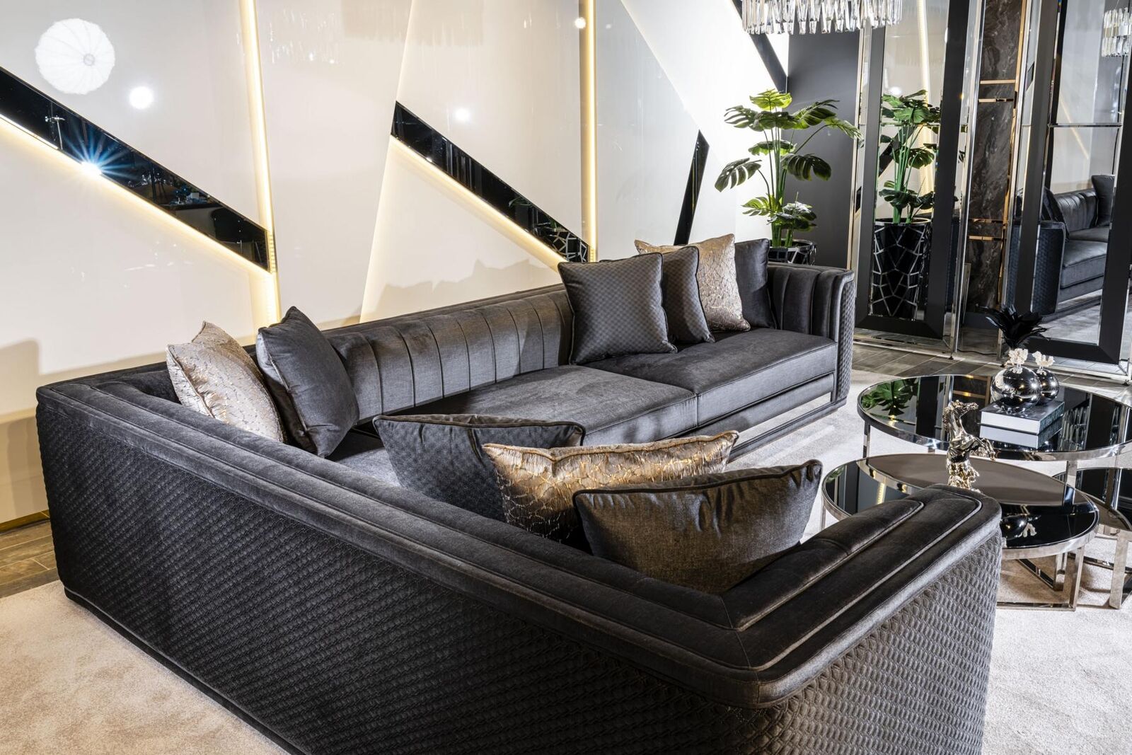 Wohnzimmermöbel, Ecksofa mit Couchtischen