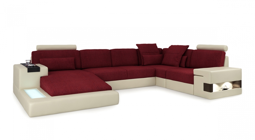 XXL Ecksofa U Form Ledersofa Sofa Polster Couch Leder Textil USB Wohnlandschaft