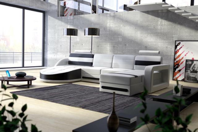 XXL WOHNLANDSCHAFT COUCH GARNITUR DESIGN ECKCOUCH Schwarz LEDERSOFA mit USB Neu