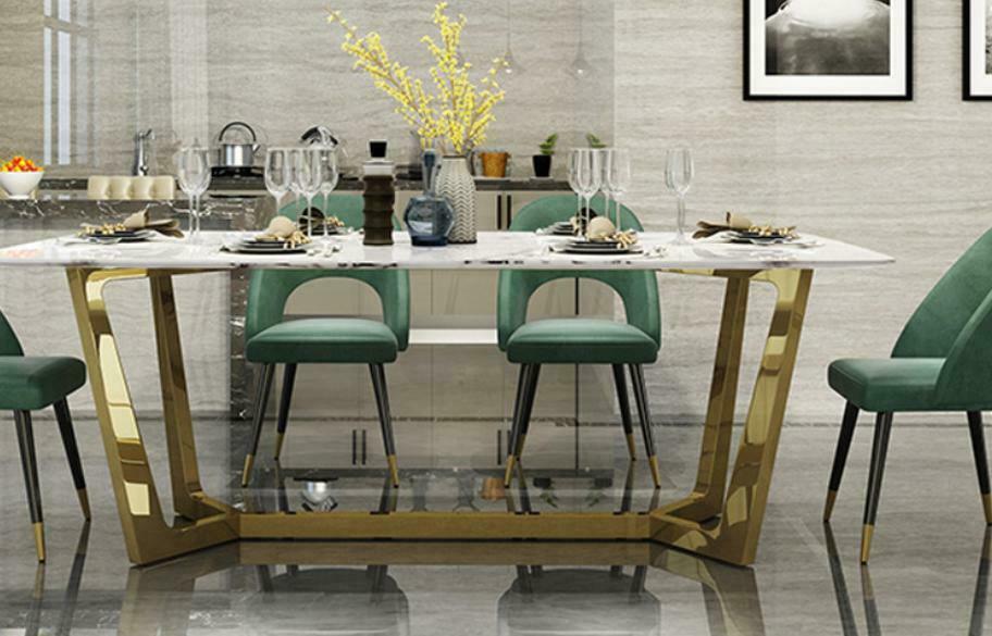Entdecken Sie den Luxus und die Eleganz des Edelstahl Tisches von XL Moebel! Dieser moderne Esstisch ist nicht nur ein Blickfang, sondern auch eine Bereicherung für Ihr Esszimmer. Mit Maßen von ca. 140 x 80 x 75 cm bietet er genügend Platz für gemütliche Mahlzeiten mit Familie und Freunden. Die Arbeitsplatte aus Marmor Imitation und die Beine aus Stahl verleihen diesem Tisch eine edle Optik. Neben der abgebildeten Größe sind auch andere Größen wie 160 x 90 x 75 cm oder 180 x 90 x 75 cm auf Anfrage erhältlich. Bringen Sie mit diesem hochwertigen Tisch von XL Moebel stilvolle Moderne in Ihr Zuhause!