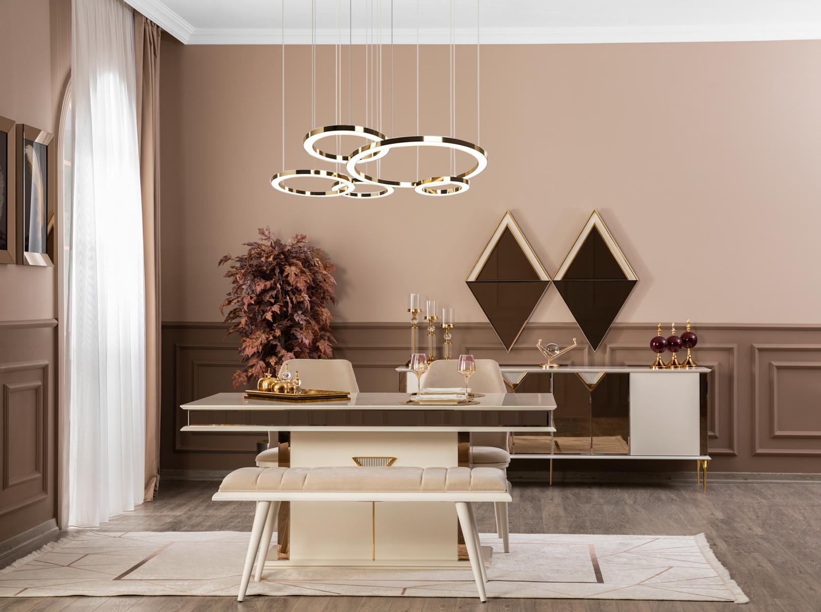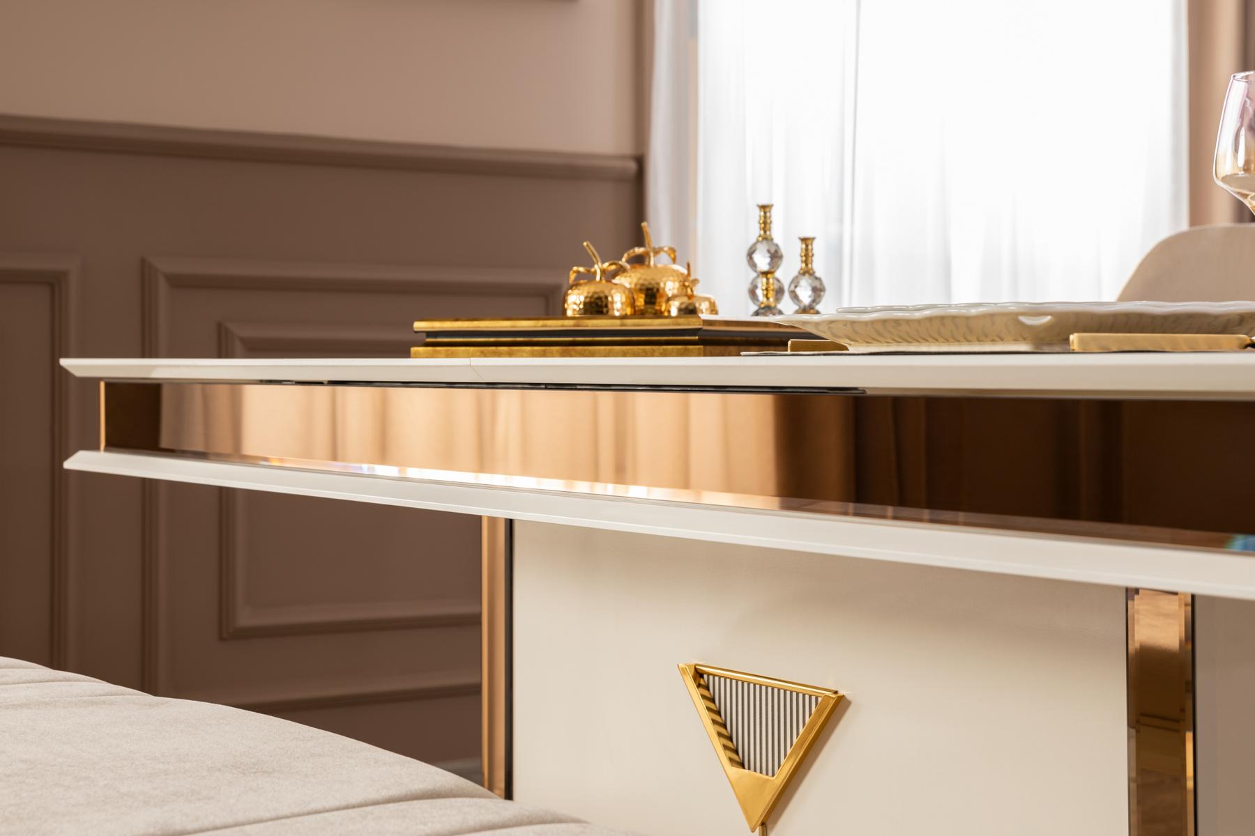 Entdecken Sie die Tisch- und Stuhlgruppe Esszimmer Garnitur 5tlg. Set Möbel Essgruppe Beige von XL Moebel! Dieses moderne Esszimmer-Set besteht aus einem Tisch und 4 Stühlen, die aus hochwertigem Holz gefertigt sind. Der Tisch hat die Maße ca. 170 x 95 x 78 cm, erweiterbar auf ca. 212 x 95 x 78 cm. Jeder Stuhl ist ca. 50 x 62 x 82 cm groß. Bringen Sie mit dieser stilvollen Essgruppe eine gemütliche Atmosphäre in Ihr Esszimmer. Jetzt bestellen und Ihr Esszimmer aufwerten!