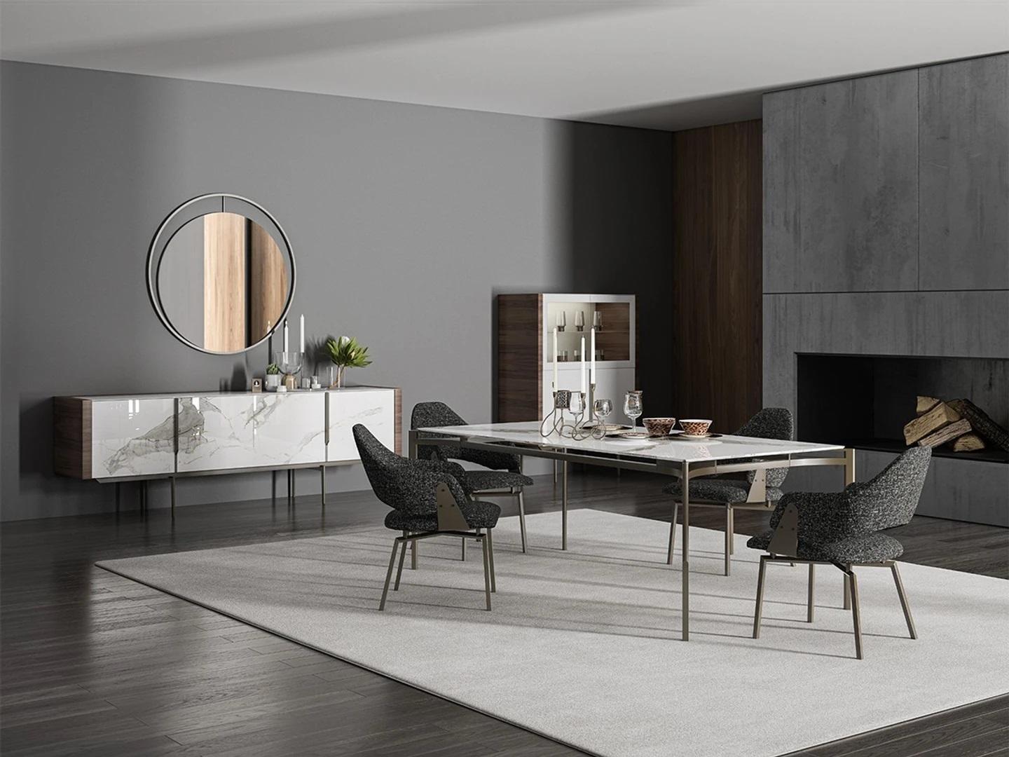 Erleben Sie luxuriöse Eleganz in Ihrem Esszimmer mit unserem 8-teiligen Luxus Esszimmer Set! Dieses Set beinhaltet einen stilvollen Esstisch, 4 elegante Stühle, ein geräumiges Sideboard, einen eleganten Spiegel und eine bezaubernde Vitrine. Die Maße des Esstisches betragen ca. 187 x 107 x 76 cm, während die Stühle ca. 54 x 66 x 83 cm messen. Das Sideboard misst etwa 240 x 56 x 80 cm. Hergestellt aus hochwertigem Holz mit Metallakzenten, verleiht dieses Set Ihrem Esszimmer einen Hauch von Luxus. Bringen Sie mit diesem atemberaubenden Esszimmer Set Stil und Klasse in Ihr Zuhause!