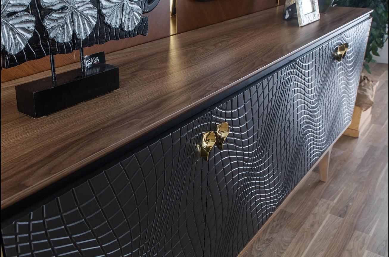 Luxus Esszimmer Set Esstisch + 4x Stühle + Anrichte mit 2x Spiegel Neu