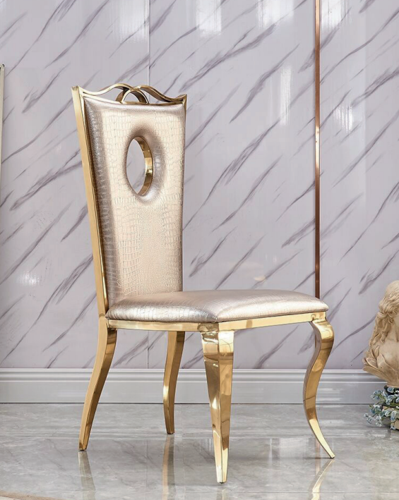 Beiger Esszimmerstuhl Moderner Einsitzer Kunstlederstuhl Edelstahl Möbel