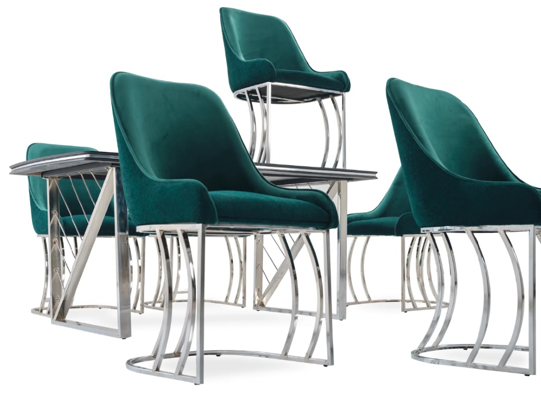 Das Design Polster Sitz Stühle Stuhl Garnitur Sessel Lounge Club Set Ess 6 x Chair ist eine stilvolle und komfortable Lösung für Ihr Zuhause. Mit sechs Stühlen in einem eleganten Grünton bietet dieses Set nicht nur ausreichend Sitzgelegenheiten, sondern auch ein modernes Design, das jeden Raum aufwertet. Die Maße von ca. 50 x 50 x 93 cm pro Stuhl sorgen für eine angenehme Sitzhöhe von ca. 47 cm und eine Sitztiefe von ca. 45 cm, ideal für lange Abende am Esstisch oder gesellige Treffen mit Freunden. Die Beine aus Edelstahl und der Textilsitz vereinen Langlebigkeit und Komfort in einem zeitgemäßen Look.