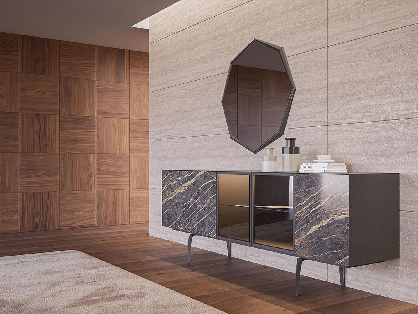 Luxus Esszimmer Komplett Esstisch 4x Stühle Einrichtung Sideboard mit Spiegel