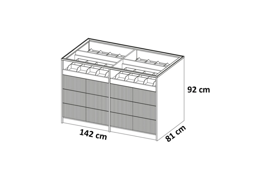 Entdecken Sie den exklusiven Glasschrank für Ihr Schlafzimmer! Dieser Designer-Garderobenschrank ist nicht nur ein Blickfang, sondern auch äußerst geräumig. Mit Maßen von ca. 299 x 396 x 299 cm bietet er viel Platz für Ihre Kleidung und Accessoires. Die dazugehörige Kommode mit den Maßen ca. 142 x 80 x 92 cm ergänzt das Set perfekt. Der Schrank und die Kommode sind aus hochwertigem Holz und Glas gefertigt und sorgen somit für eine edle Optik und Langlebigkeit. In der Farbe wie abgebildet fügen sie sich harmonisch in Ihr Schlafzimmer ein. Sichern Sie sich jetzt diesen stilvollen Garderobenschrank und die passende Kommode von XL Moebel - für ein modernes und funktionales Schlafzimmerdesign!