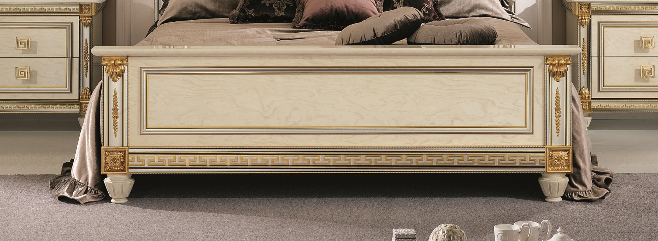 Erwecken Sie mit dem klassischen Schlafzimmer-Set von Arredoclassic aus Italien den Stil und die Eleganz von Italien in Ihrem Zuhause! Dieses 6-teilige Möbelset besticht durch italienisches Design und Luxus, gefertigt aus edlem Holz. Das Set beinhaltet ein beeindruckendes Bett mit den Maßen 212x223x145 cm und optionaler Liegefläche von 180x200 cm, zwei stilvolle Nachttische (74x48x63 cm), eine geräumige Kommode (147x56x93 cm), einen eleganten Spiegel (101x3x114 cm) und einen großzügigen Kleiderschrank (206x63x222 cm). Mit dem zeitlosen Design in der abgebildeten Farbe verleihen Sie Ihrem Schlafzimmer einen Hauch von italienischem Flair. Holen Sie sich diese exquisiten Möbelstücke aus Luxusholz direkt nach Hause und genießen Sie das italienische Möbeldesign in seiner ganzen Pracht!